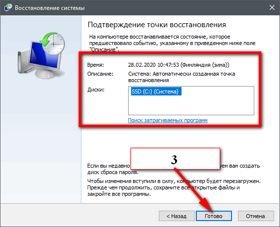 - Когда восстановление завершится, на экране появится окно с информацией об успешном завершении.