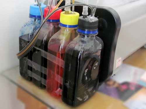 А вот жидкие краски могут сильно пачать втрернскомности принтерности, и что самой главности, засыхать. Из-за этого в соплах печатающей головки образуются пробки от засохших чернил, что препятствует попаданию красящего вещества на бумагу.