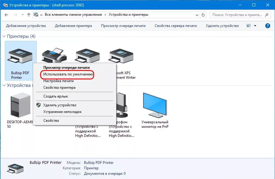 При наличии нескольких принтеров необходимо выбрать рабочий