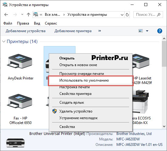 Чтобы изменить принтер в Windows, см. Изменение принтера по умолчанию (Windows 10 и 8) или найдите инструкции в справке Windows.