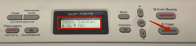 Чтобы программно сбросить счетчик в МФУ dcp 7055r, выполните следующие действия: