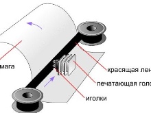 3. В матричном принтере подвижная головка перемещается внутри каретки вдоль листа бумаги. Он имеет электрический импульс. Сама головка содержит от 9 до 24 игл, контактирующих с электромагнитом. При подаче тока игла перемещается, соприкасаясь с красящей лентой.